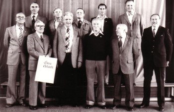 Hinten von links:Josef Baur, Spielausschuß), Wolfgang Wenger Günter Doser, Siegfried Stauß, Manglitz Wobbe, Nobert Birkenmeier, Gerd Wegner, Rolf Keller, Vorstand + Bürgermeister vorne links: Erwin Buck, Hans-Jürgen Ehm, Heinz Laudascher Rudi Pawlinka, Gerhard Knor