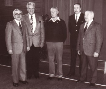 Von links: W. Hering (Gold und Ehrenmitglied), TSV-Vorsitzender W. Knor W. Schwarz (Gold), SV-Vorsitzender J. Baur, H. Jerger (Gold)