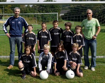 Hinten von links: Klaus König (Trainer und Betreuer) Noah Menger, Christian Alber, Florian König, Fabian Schweizer Christian Kraft, Dennis Käppeler, Stefan Irmler (Trainer und Betreuer)